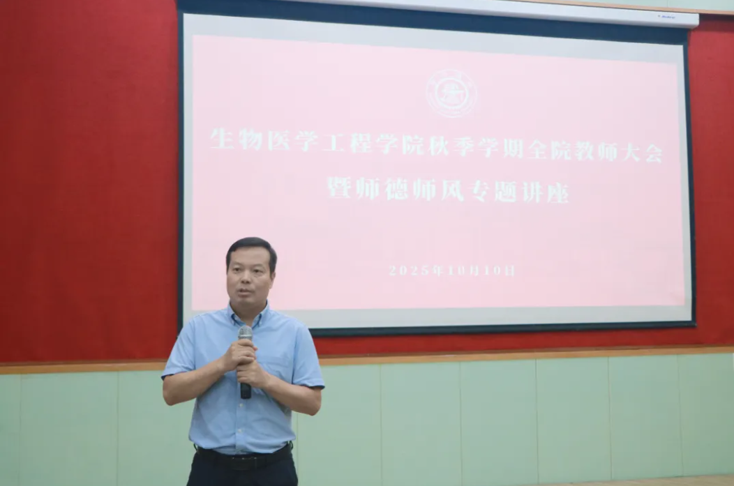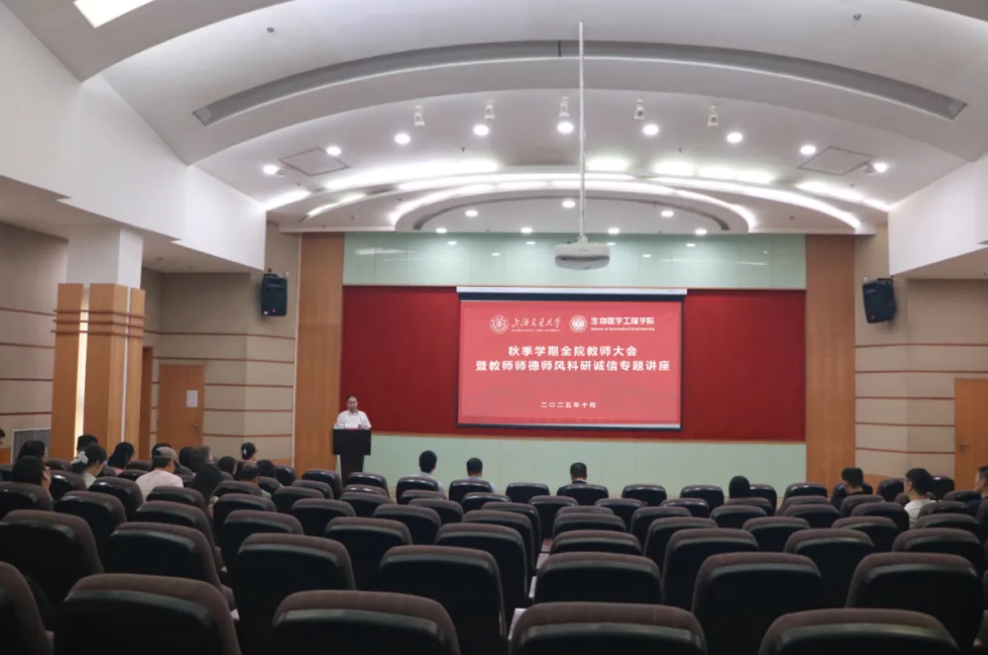 2025年10月10日下午,素人无码 在闵行校区文选医学大楼一楼报告厅举行2025年秋季学期全院教师大会暨师德师风科研诚信专题讲座。学校人力资源处副处长、党委教师工作部常务副部长陈贤峰,研究生院国际化办公室主任赵凤及办公室成员陈卜侨、陈铖、薛循丹,出入境管理与服务中心副主任万芸芸、事务主管胡新怡,学院部分领导班子及教师代表出席会议。大会由学院党委书记孔令体主持。