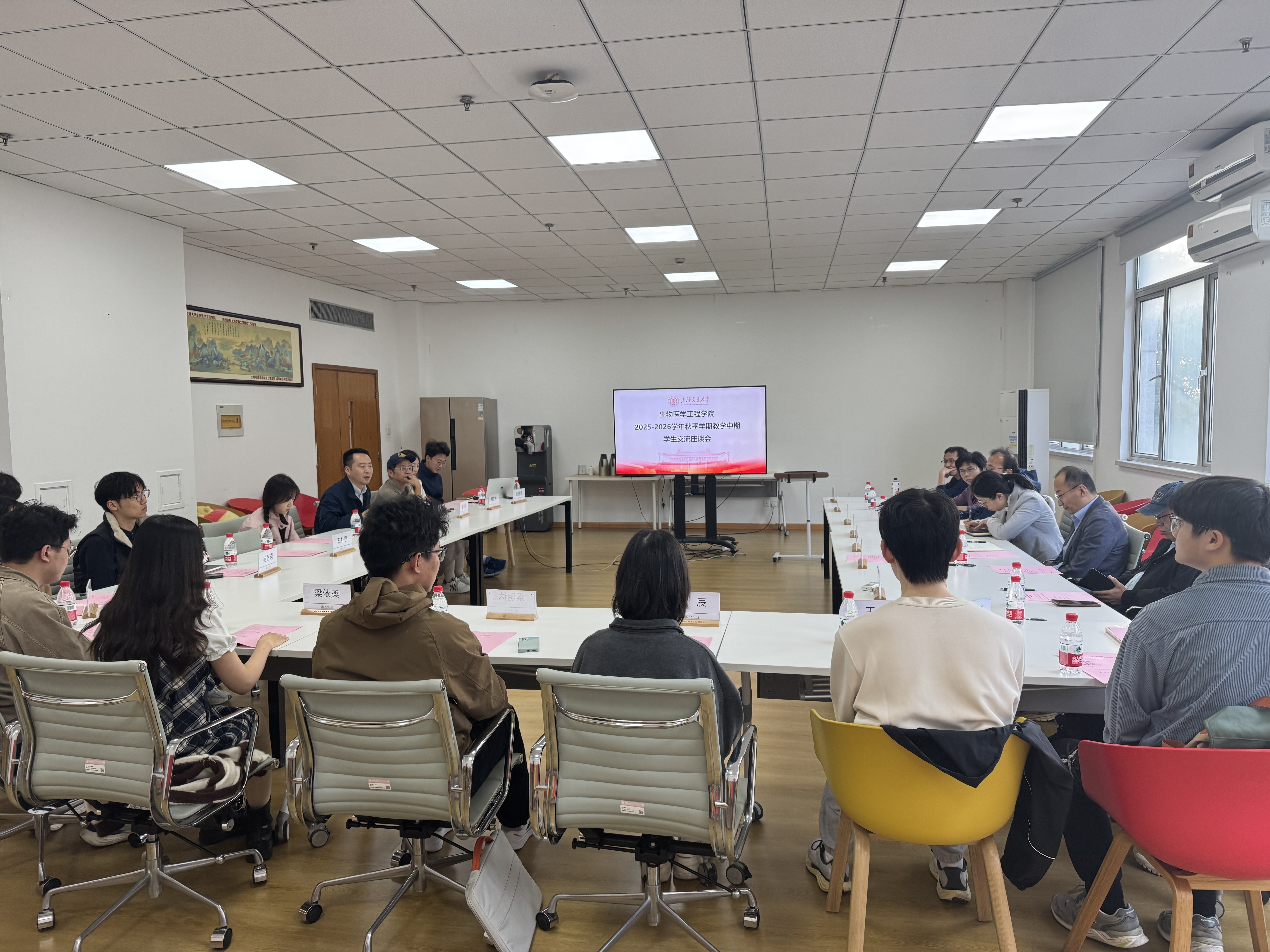2025年10月29日下午,素人无码 于闵行校区文选医学大楼311会议室举行2025-2026学年秋季学期教学中期学生交流座谈会。会议由本科教学副院长顾波波主持,教务处与教育技术中心相关教师、校院教学督导专家、本研学生代表及教务办教师共同参与,围绕教育教学以及学生诉求展开了深入交流。
